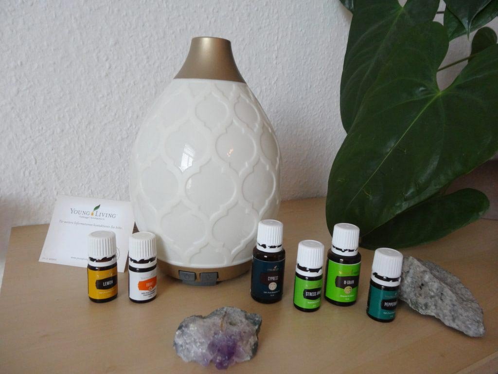 Während ich hier sitze und schreibe, rauscht neben mir der Aroma Diffuser und verströmt einen ganz wunderbaren Duft von Zitrone, Orange. Und weil ich es so gerne mag – auch noch einen Hauch von Weihrauch und Zedernholz.